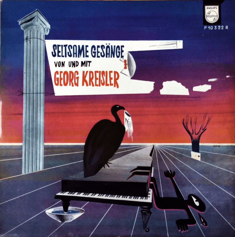 Nu, met het boekje onder de neus, zien we waarom dit lied verdwenen is: het was geen oorspronkelijk Lureleilied maar een cover, van ene “George” Kreisler. Google leert ons dat Georg Kreisler (driemaal fout gespeld is scheepsrecht) een Oostenrijks-Amerikaanse componist was die vooral in de jaren ’50 succes oogstte met scherpe, komische Tom Lehrer-achtige liedjes. Wat heet Tom Lehrer-achtig, hij schijnt een aantal Lehrerliedjes te hebben “geleend” en in het Duits vertaald zonder vermelding van de originele maker: het fameuze Poisoning Pigeons In The Park werd bij hem Taubenvergiften, en I Hold Your Hand In Mine is bij hem Die Hand. Even gecheckt of Lehrer soms ook You’re Neurotic op zijn naam heeft staan, maar nee, Du Bist Neurotisch lijkt echt door Kreisler zelf geschreven.