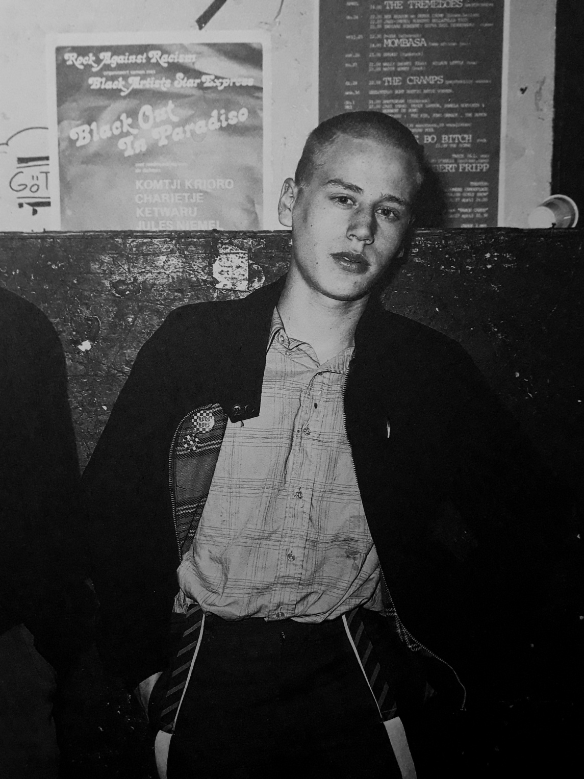 Eigenlijk acteert John Lanting (!) als struikrover Oenk (of Boenk?) hier nog het meest naturel van iedereen. Er is ook een mooie rol weggelegd voor een twaalfjarig jochie dat niet kan praten (iig niet tot het eind) en dus veel moet gebaren. Ik zette het beeld stil en dacht: er is iets met hem, met zijn blik, wat me bekend voorkomt… Wat gespeur leerde me dat deze jongen Igor Utrecht was, later beter bekend als Igor Mortis! Bekend gezicht in de oude Amsterdamse punkscene (ik kende ‘m niet persoonlijk maar moet z’n oude bandje Prediktor wel eens hebben gezien) en tegenwoordig uitstekend tattoo artist in Portland, USA. Hoe kwam hij in die serie terecht? Wat vond hij als grafisch artiest-in-de-dop van de tekeningen van Carl Hollander? Vragen, vragen, die we hem hebben gemaild en waar hij hopelijk ooit hier de antwoorden op geeft 🙂 Hier alvast Igor/Hannes in volle glorie (Henk van Ulsen/ Dr. Kroch is hier trouwens ook een soort proto-punk/goth zie ik nu):