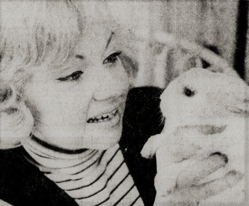 (Er zijn drie foto’s, op één lacht ze uitbundig en op een ander lijkt ze iets te roepen; deze is m’n favoriet omdat hij in een onbewaakt moment genomen lijkt te zijn.) Sylvia was rond 1965 in haar eerste flush of fame, ze deed veel TV-werk en maakte 7 avonden in de week furore op het Lurelei-podium. Maar het zichzelf bedruipende, ongesubsidieerde Lurelei betaalde zijn eigen leden een schijntje om zo veel mogelijk geld op te kunnen te sparen; Sylvia verdiende minder dan bijv. een simpele kantoorbediende, wat ook de reden was voor haar vertrek naar Wim Kan later dat jaar.