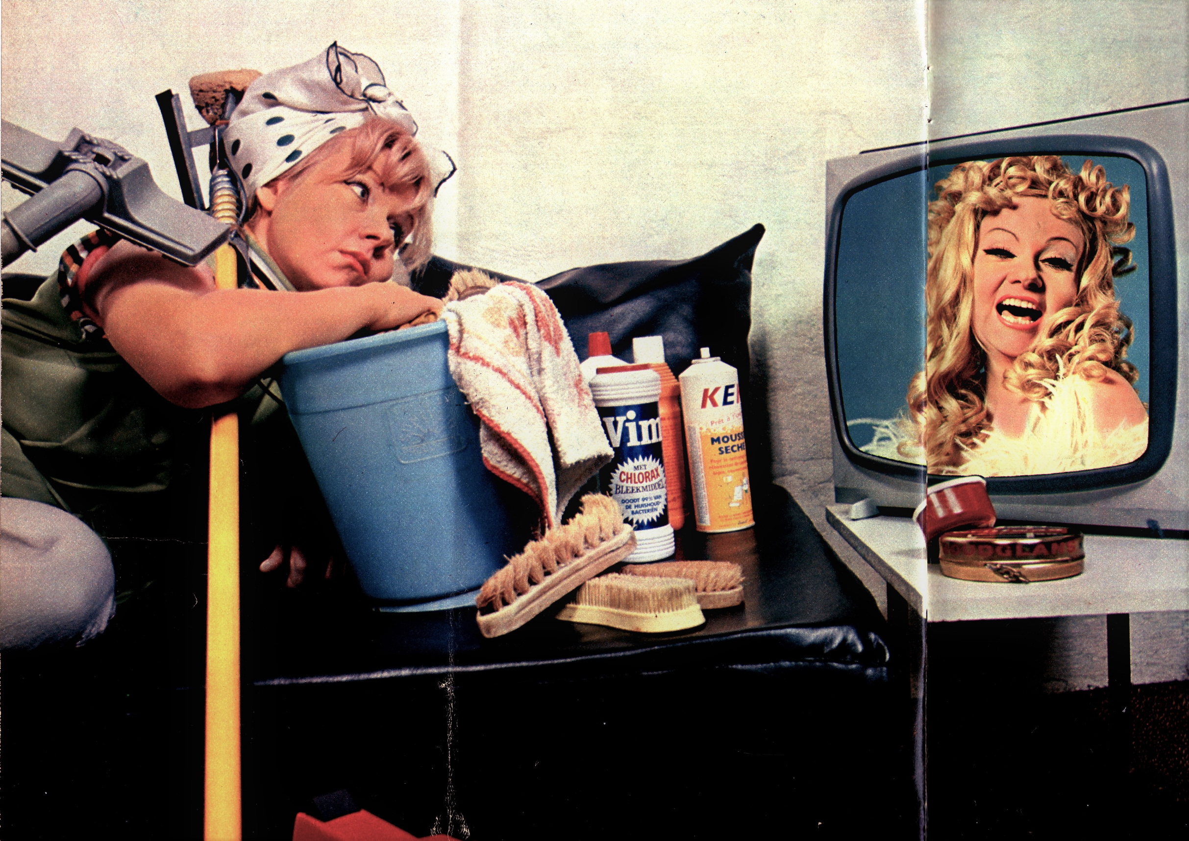 Het is raar: oude voorwerpen van waarde als boeken en platen worden bewaard, om later bij tonnen in de kringloopwinkels te liggen. Oude wegwerpmassaprodukten als tijdschriften en tv-gidsen, die zijn zeldzaam en duur, áls je ze vindt, en dan nog: hoe weet je wat je zoekt? Er valt nergens te achterhalen wie of wat in welke nummers van welke bladen heeft gestaan, het is een schat aan informatie die in een moeras van vergetelheid wegzakt. Toevallig las ik in een krant op Delpher over deze fotoreportage, oude Libelle ergens opgesnord, en ziehier! De bijbehorende tekst, zogenaamd van Sylvia maar wsch uit de duim van een copywriter gezogen, rakelt weer alle clichés op: ze is een softie, een huissloofje, eet zich vol etc. Maar de foto’s van Hans Pelgrom (familie van Karl/ Els/ Joris?) zijn prachtig.