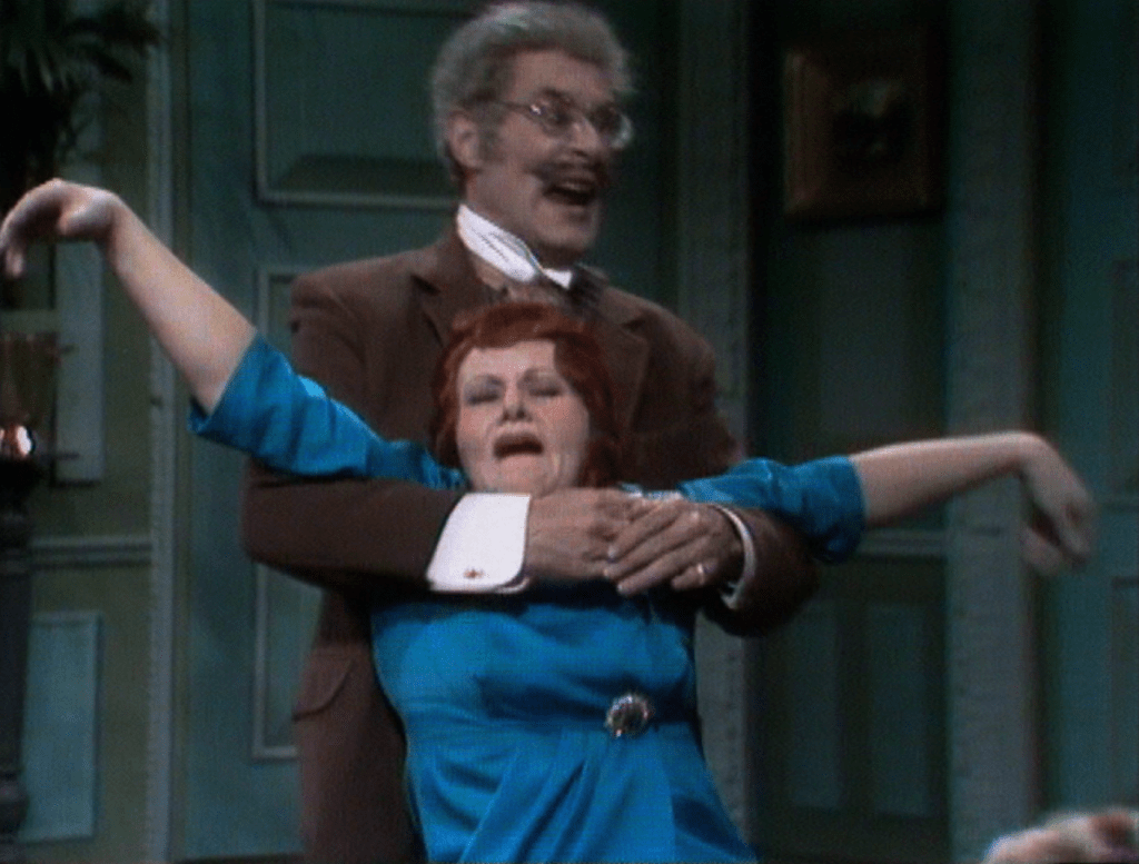 Sylvia en Ank van der Moer (mooi stel: de eerste ooit die “neuken” op het toneel zei, samen met de eerste die “lul” op het toneel zei!)En daar is Allard van der Scheer weer……en Henk MolenbergJules Hamel, gewelddadige pooier van Sylvia in Wat Zien Ik, speelt hier haar lulletje rozenwater-zoon.