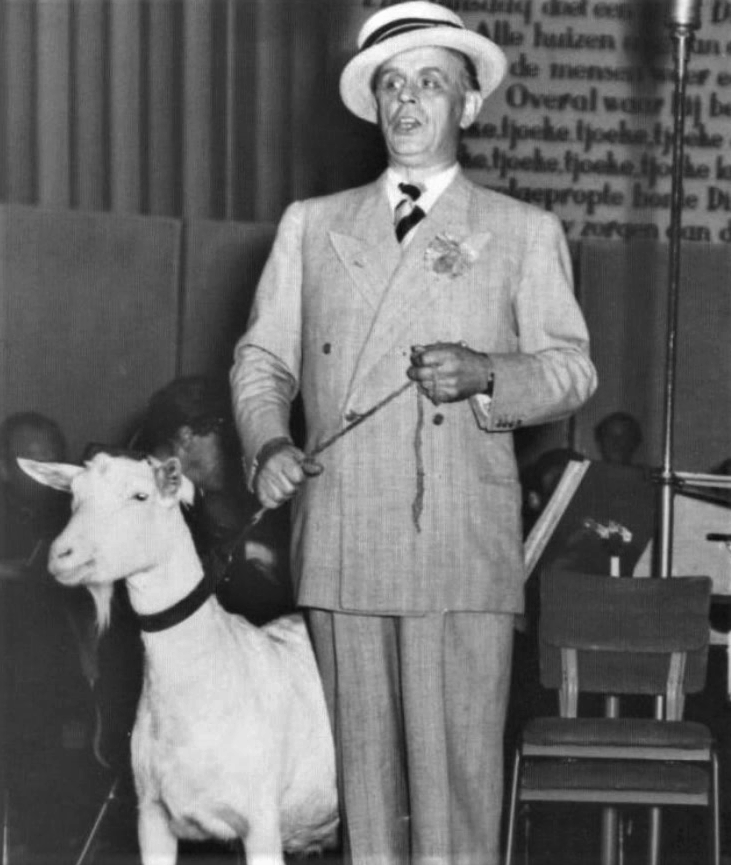 Ome Joop zou veel later, terug in NL, bekend worden als componist (Zuiderzeeballade e.a.) en begeleider van o.a. Lou Bandy, waar hij nichtje Sylvia aan haar eerste Nederlandse showbiz-baantje hielp: ze moest de geit van Lou vasthouden! Bandy, die een hit had met Lou Met De Geit, verlootte bij elk optreden een geit aan het publiek. Wat ik niet over zou hebben voor een foto van de 16-jarige Sylvia met de geit van Lou aan een lijntje!
