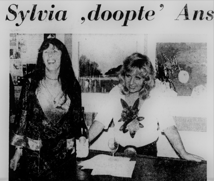 Ter afsluiting van het eerste DeLeurean-jaar hebben we een mooie scoop voor u. Fake news? Alternative facts? Daar draaide Sylvia, in 1974 al, haar hand niet voor om! (Of juist wel, zoals zal blijken.) “SYLVIA DOOPTE ANS” kopte de Telegraaf op de voorpagina. Een expositie van haar vriendin (schilderes/tekenaar/schrijfster) Ans Wortel openend, zwaaide Syl in het vuur van haar betoog met een glas wijn en bevlekte zodoende een kostbare Wortel-gouache. Consternatie, tranen, etc. Onder de 72-punts krantenkop een foto van de twee vriendinnen die er zo te zien alweer om konden lachen. Maar het verhaal heeft een staartje: 45 jaar later kreeg uw blogger van plaatsgenoot en facebookvriend Ko Boos, ex-journalist, tegenwoordig “seriewoordenaar”, te horen dat het hele incident in scene was gezet!