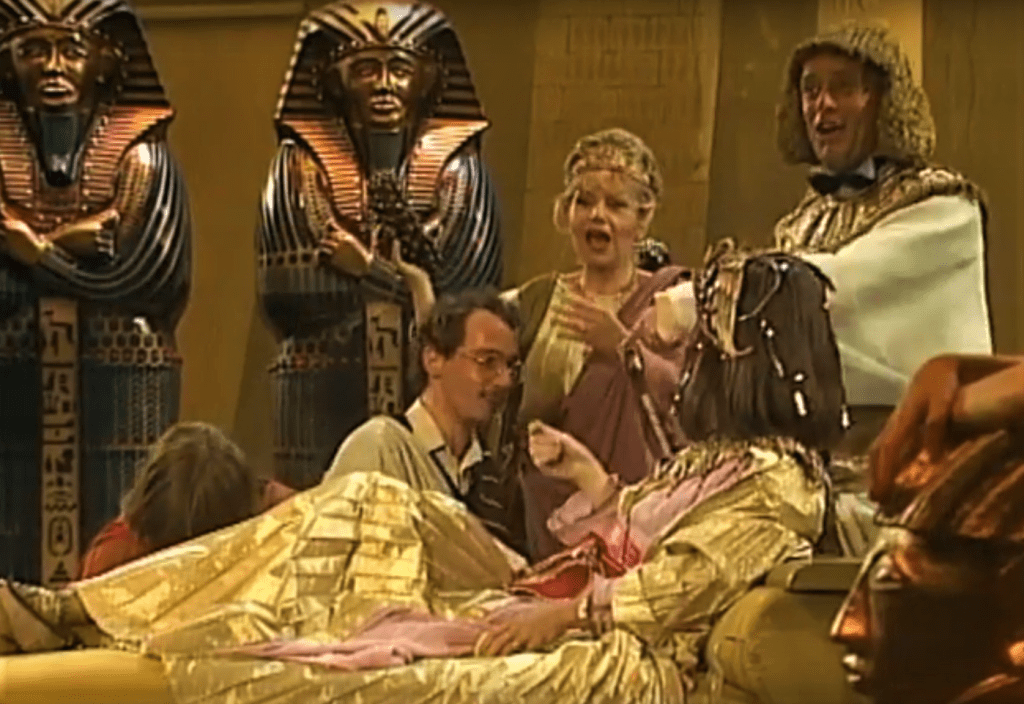 Als hij het zegt zal er wel een kern van waarheid in zitten zullen we maar zeggen. Maar! Één keer kwam het voor dat Sylvia de media te slim af was. In 1985 speelde ze mee in de Willem Ruis Show, een all-star spektakel met Egyptisch thema. Heel voorspelbaar hadden ze haar gecast als voorproefster van Cleopatra/ Sonja Barend. Verbazing alom als er een flink afgeslankte voorproefster Sylvia aan komt geschreden! (Een iets té flink afgeslankte versie misschien? Net als bij de nieuwe Adele-anno-2020 krijg je het idee dat er iets mist, dat het niet de “echte” is…)